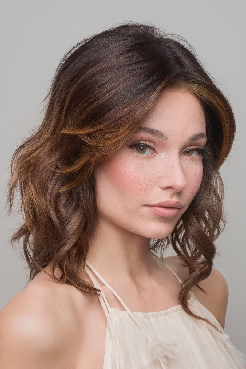 Discover ultimate versatility and comfort with the Medium Wavy TP Mono from the Amore Collection. This mid-length heat friendly hair piece is perfect for all generations. featuring a wavy. textured style and a variety of styling options with its tapered fringe and monofilament top. The natural appearance is enhanced by the monofilament base. lace front. and soft net. providing a light base for your hair.
