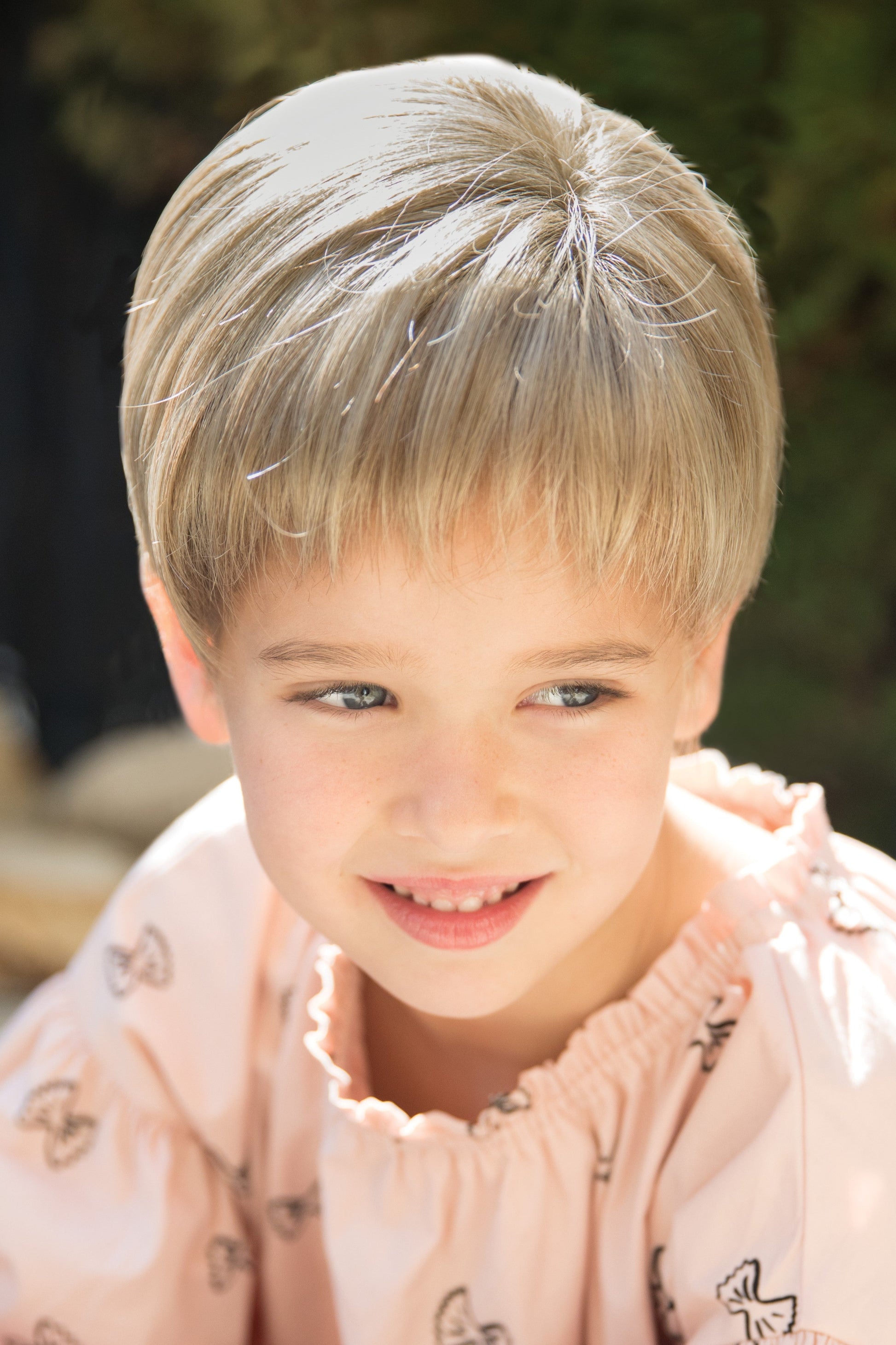 This straight ready-to-wear wig is a unisex style with tapered nape and natural body. Our children's lace front with lace cap wigs are light weight. comfortable. wefted and with an invisible hairline for ultimate comfort. This cap includes lace front plus lace part with full monofilament top covered by soft material with elastic lace that allows cap to stretch for more flexibility.