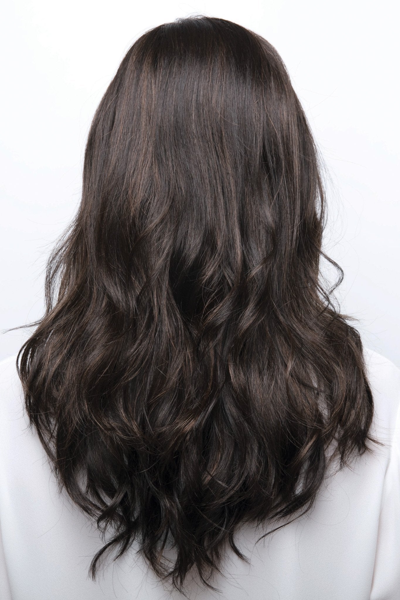 This wavy ready-to-wear wig is a long wavy layered sexy style that falls gracefully down the mid-back. The cap construction is hand-tied and lace front. This meticulous design produces a lighter. more comfortable wig. The lace front is a hairline fusion technology with minimal lace front for a natural look. You will feel cool and comfortable with superior air circulation provided by this technologically advanced cap design.