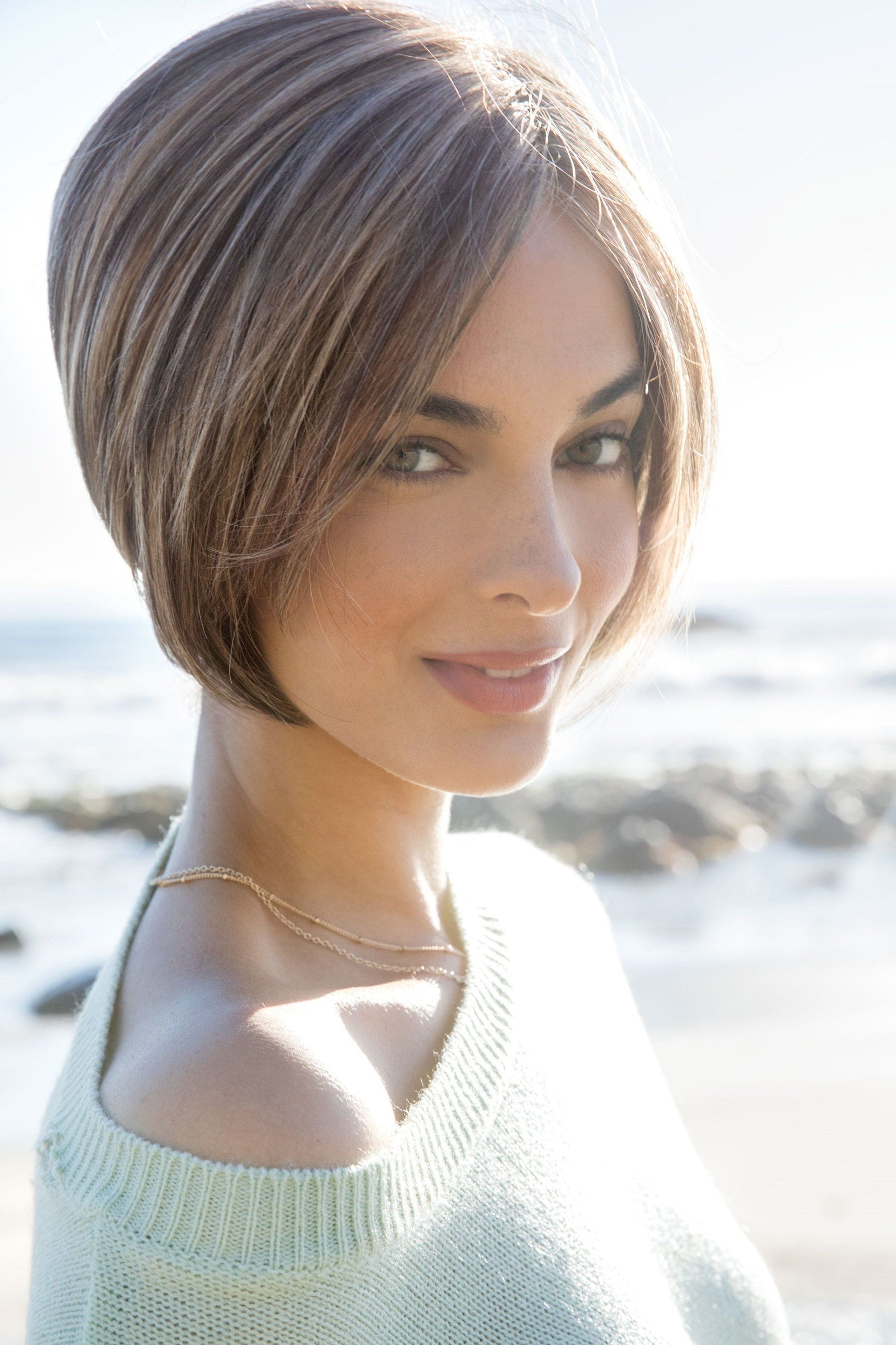 Emy from our Amore Collection is a short synthetic wig. This straight ready-to-wear wig is a short. angle bob. Volume can be added to the crown area to fit your face shape and for your daily wear look. Our Emy cap construction is Double Monofilament and lace front. The lace front is a hairline fusion technology with minimal lace front for a natural look. Its Double Monofilament cap construction is combined with calibrated machine wefting along the sides and back. Emy cap includes polyurethane tape tabs along the front and adjustable tabs in the back neck area. to allow for comfortable fit. The result is a comfortable fit with a natural look that is both fashionable and easy to wear.