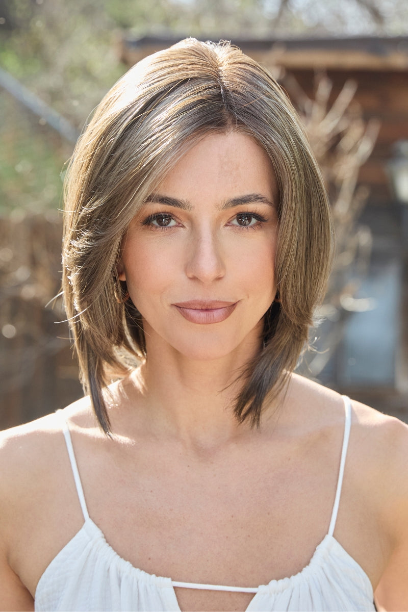 Say goodbye to the past and embrace Amore Wigs Findley. This contemporary mid-length wig is smooth with straight locks that exude elegance. The collarbone length style adds a hint of refinement. while the lace front and monofilament top maintain a chic and effortless appearance with added versatility. Crafted with blended fibers for an impeccably authentic look.