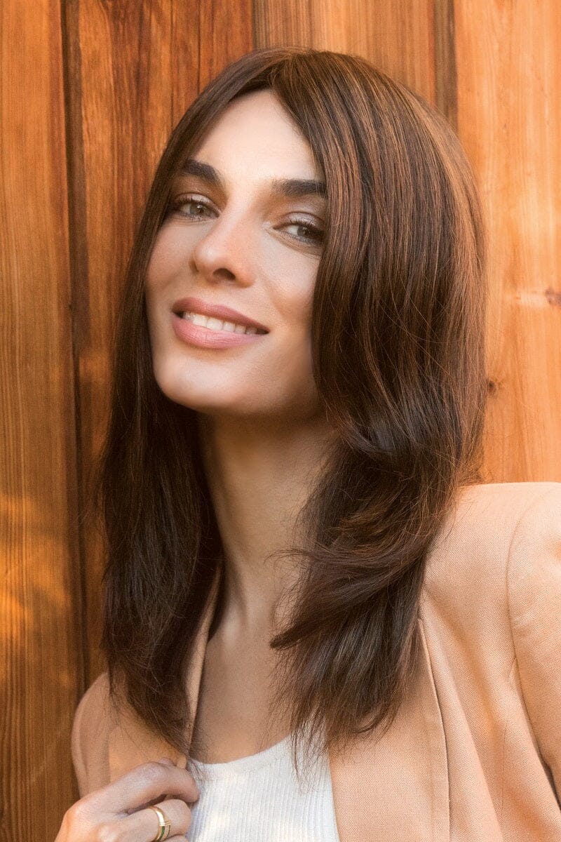 This straight hair enhancer is a simple way to add density and coverage. It's Monofilament base includes a soft wire perimeter technology for the perfect fit. The Flex TP will give you a light. breathable base and provides the ultimate versatility and comfort. This topper can be worn as a highlighter or filler and covers the top of the head from fringe to crown.