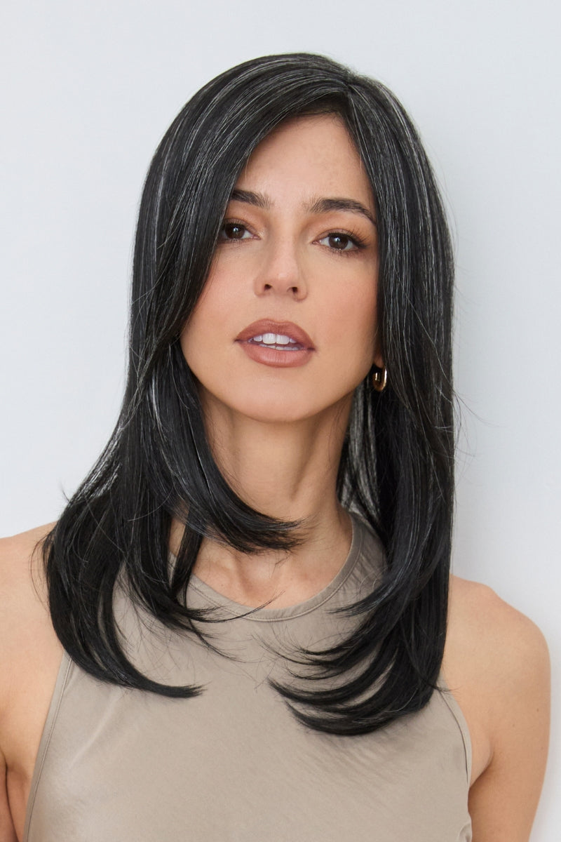 The Long Top Piece Mono Large (#773) by Amore is the popular topper now offered in a larger base. Made from a blended fiber. this long topper adds dimension and density. making it perfect for filling in or adding extra volume for every occasion. dressing it up for special occasions and dressing it down for the everyday casual. The Long TP Mono also features Amore's newest fiber. Natural Movement hair fiber.