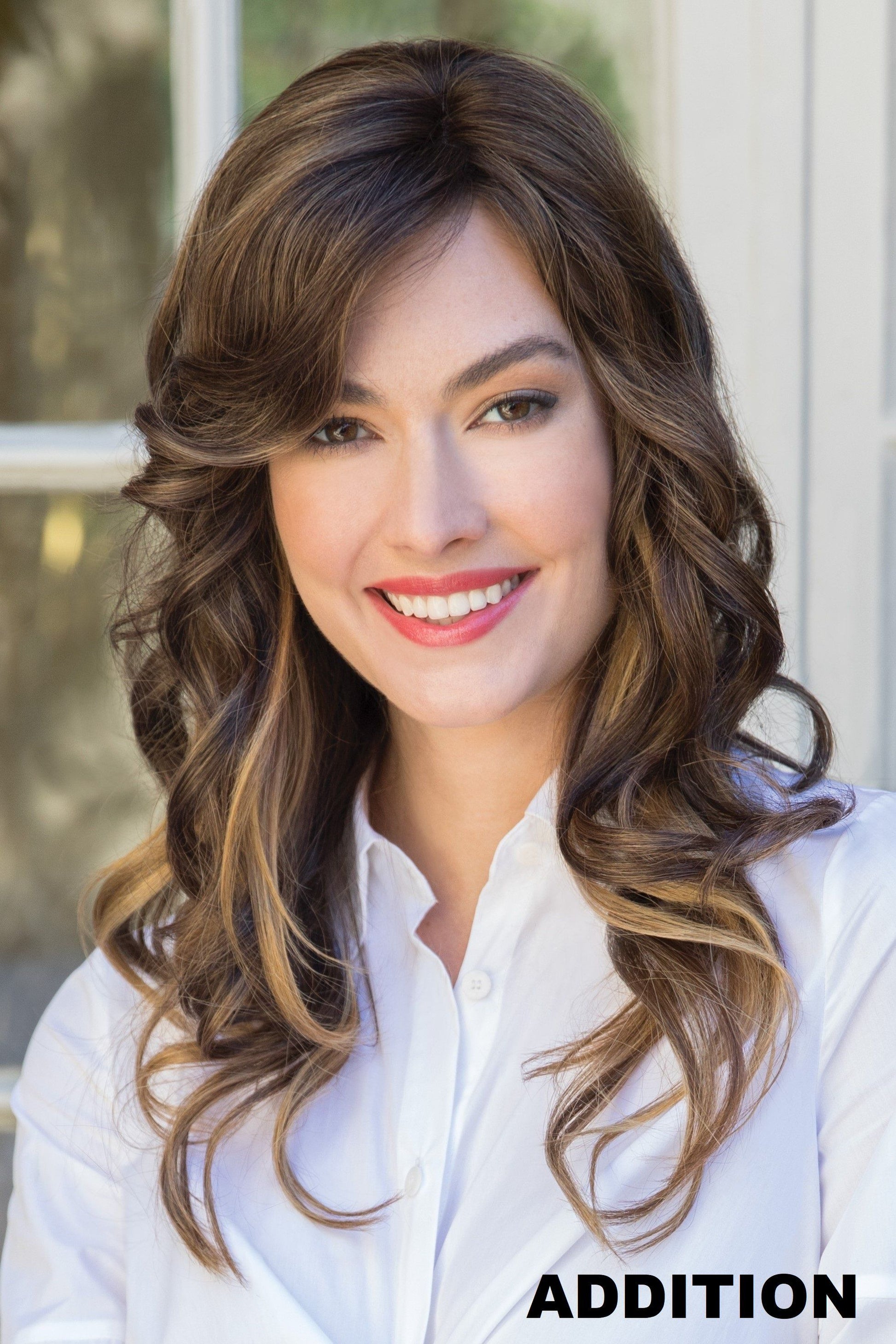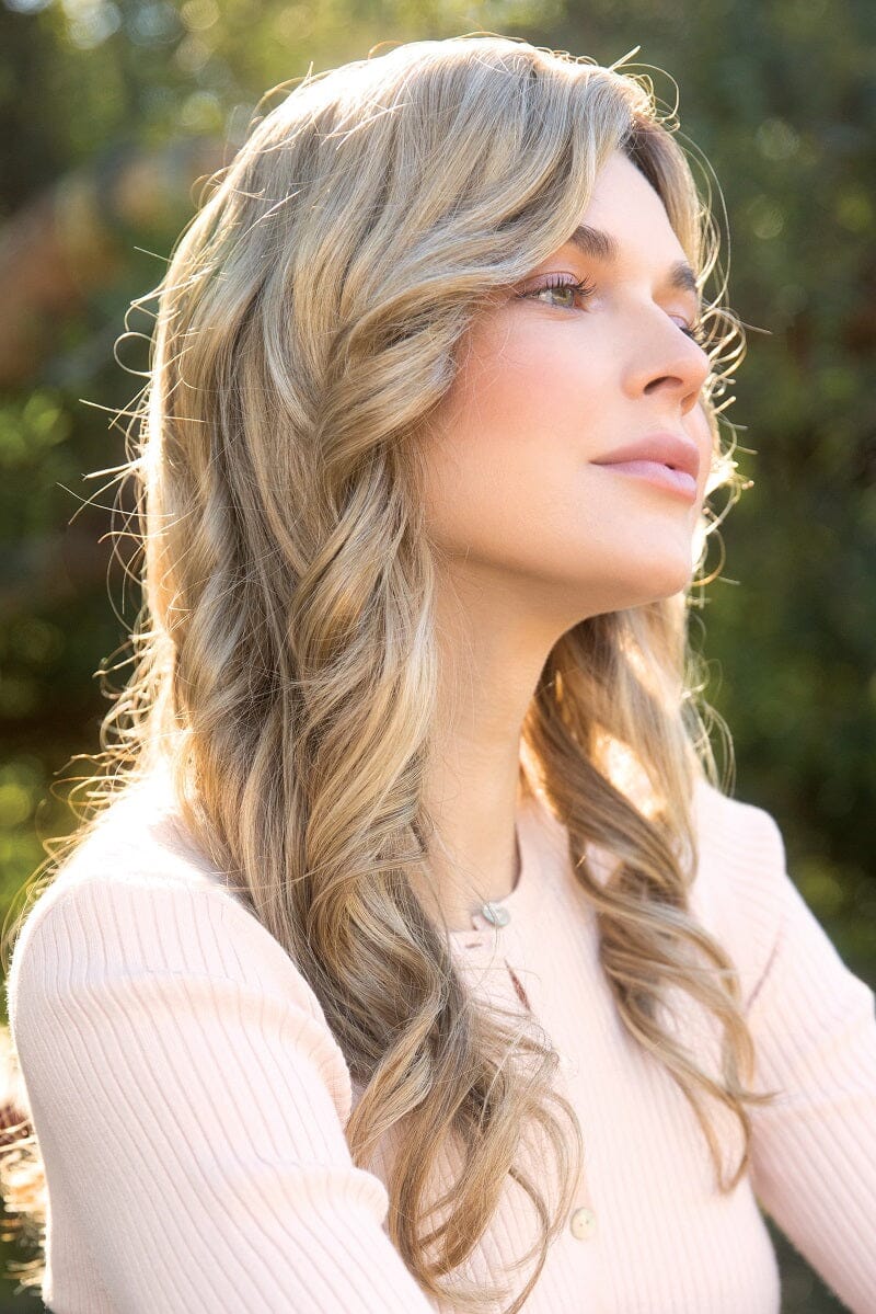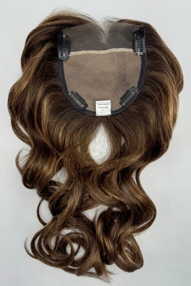 Luxe Top Piece from the Amore Collection is a synthetic mid-length hair piece. This soft curly hair piece is a gorgeous enhancement that increases volume to your everyday look. This topper can be won as a filler for extra volume or to highlight. It's Monofilament base and lace front includes soft wire perimeter technology for a perfect fit. The Luxe TP will give you a light. breathable base and provides the ultimate versatility and comfort.