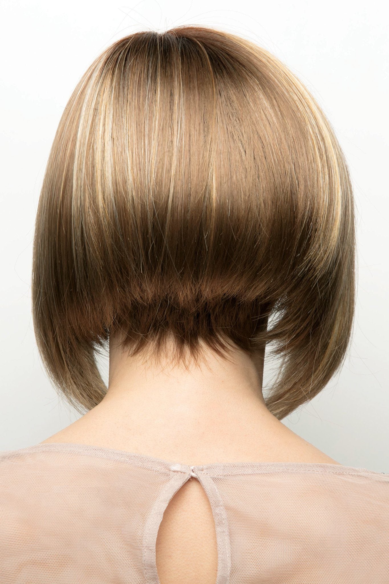 A dramatically angled bob wig with a tightly tapered nape and full fringe. Amore wigs have a hand-tied top with two-layer Monofilament construction for maximum comfort and worry-free wearing. The Monofilament construction is comfort-enhanced by a special weaving technique. which results in excellent ventilation. Also includes adjustable straps.