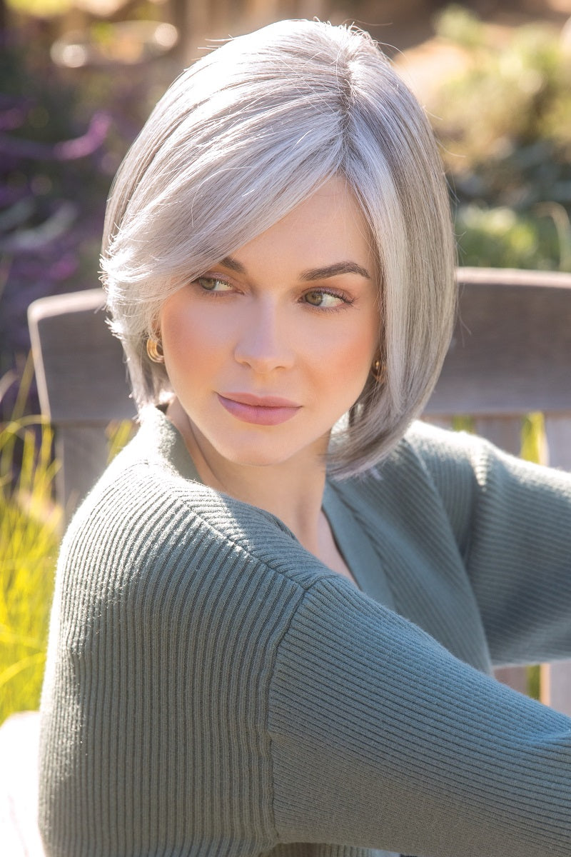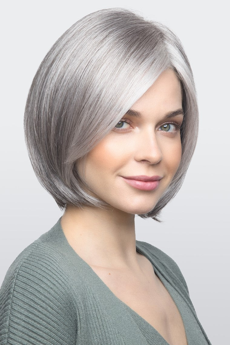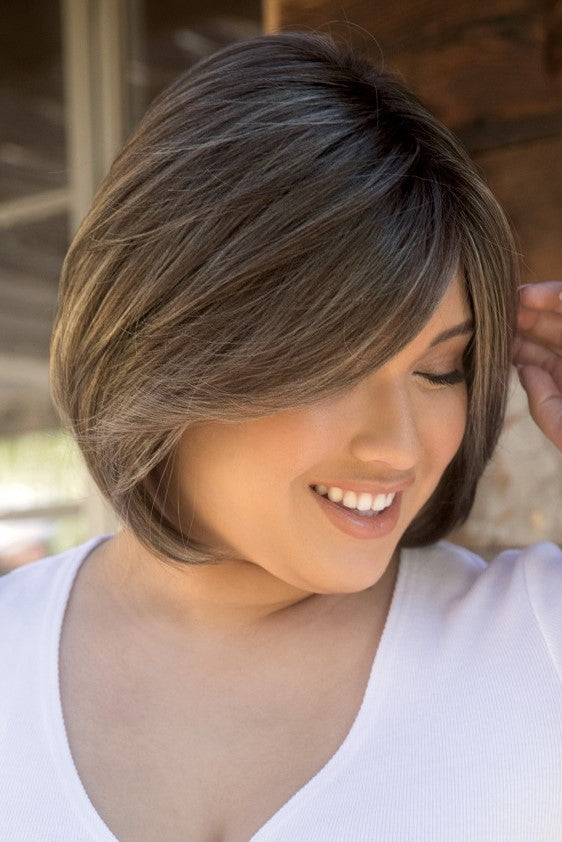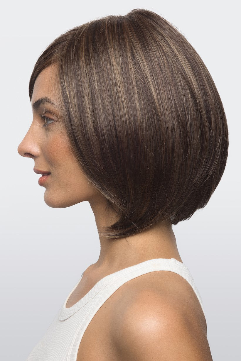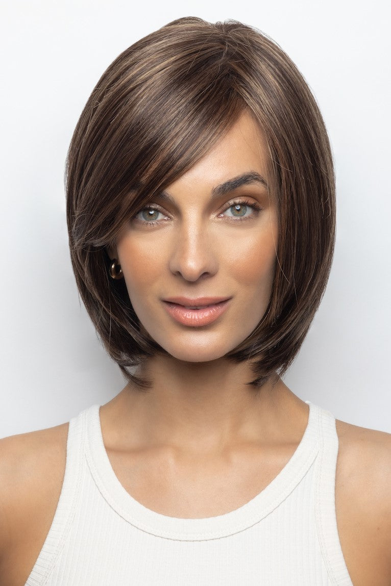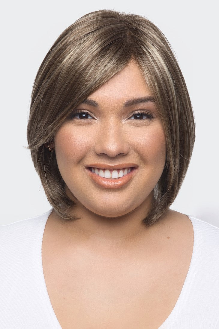 Sybil from our Amore Collection is a short length synthetic wig. This straight ready-to-wear wig is a sophisticated long layered bob. If you are wanting a long side fringe with enhancing layers that shape and highlight your cheekbones. Sybil is the style for you. Discover comfort and beauty in the newest Advanced Lace Cap. Sybil's cap features hand tied plus double monofilament cap construction along with an extended lace front. Its hand-tied wig is constructed by carefully stitching each hair fiber strand by strand. This meticulous design produces a lighter. more comfortable wig. The lace front is a hairline fusion technology with minimal lace front for a natural look. You will feel cool and comfortable with superior air circulation provided by this technologically advanced cap design.