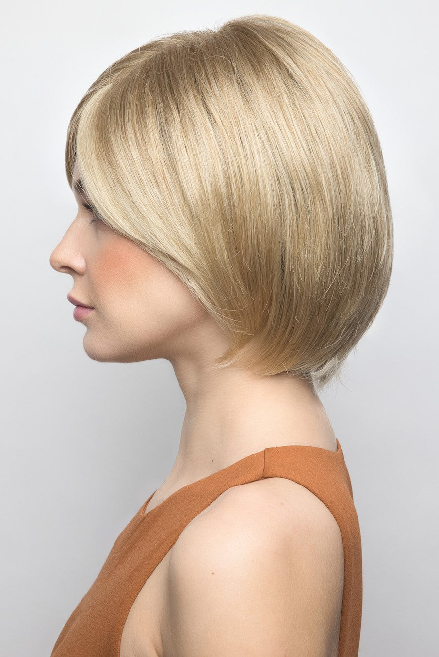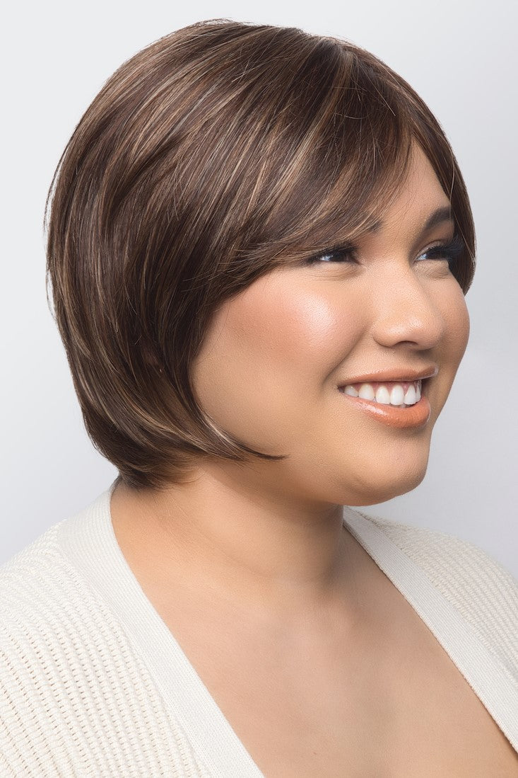 Tate from our Amore Collection is a short synthetic wig. This straight ready-to-wear wig is a short bob. Tate is a stunning bob with soft layers that create body and shape. Tate also has a soft fringle that will accentuate the eyes. Our Tate cap construction is Double Monofilament and lace front. The lace front is a hairline fusion technology with minimal lace front for a natural look. Its Double Monofilament cap construction is combined with calibrated machine wefting along the sides and back. Tate cap includes polyurethane tape tabs along the front and adjustable tabs in the back neck area. to allow for comfortable fit. The result is a comfortable fit with a natural look that is both fashionable and easy to wear.