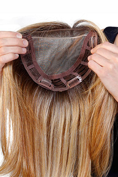 Luxurious hand pulled strand-by-strand full monofilament 18 inches long hairpiece that gives the effect of a full cap wig. Enjoy the comfort and lightweight of deluxe full lace front hairpiece. Added extra 4 layer of hair in the back of the piece gives just a little more volume and coverage without wearing a full wig. Even if you have a perfect amount of hair. this piece provides just-left-the-salon look in an instant without brow drying or styling. Built in 4 snap clips make it easy to secure. Perfect for adding the volume to the crown and natural texture to frame the face.