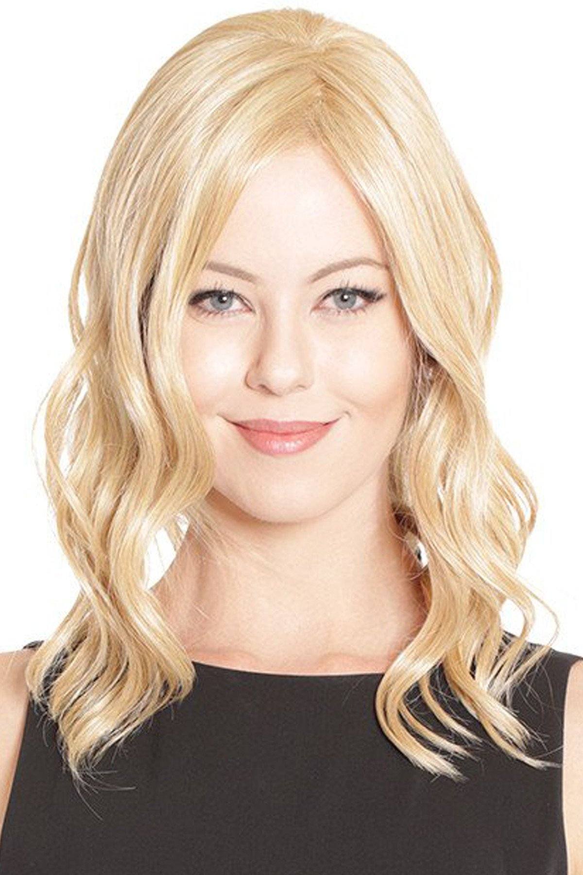 This hair topper from Belle Tress is the famous Lace Front Mono Top in the modern beach wave. 14 inches long. luxurious hand pulled strand-by-strand full monofilament hairpiece that gives the effect of a full cap wig. Enjoy the comfort and lightweight of deluxe full lace front hairpiece. Added extra 4 layer of hair in the back of the piece gives just a little more volume and coverage without wearing a full wig. Beautiful modern curls flowing naturally can be yours anytime without using the curling iron or the rollers. Built in snap clips make it easy to secure. Perfect for adding the volume to the crown and natural texture to frame the face.