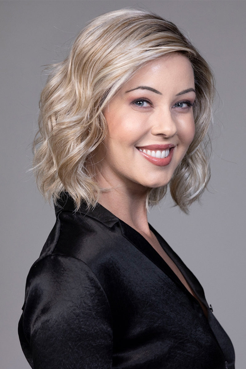 Now with an extended lace front. Caliente is a gorgeous addition to the Belle Tress Café Collection. A deconstructed wave meets the modern A-line bob. The special features include an extended lace front for a natural hairline. left lace part. unique knotting method for off-the-face styling. Slightly extended lengths toward the front and shorter blunt cut in the back creates the edgy attitude. Caliente is the hottest of the Café Collection by Belle Tress!