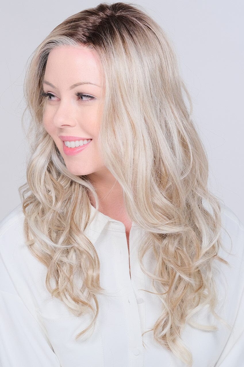 Now with an extended lace front the luxurious 23" version of Dalgona 16! According to Google Trends. "Dalgona coffee" has become the most searched type of coffee worldwide. overtaking previous highest peaks for all other kinds of coffee (The Conversation Newsletter. 2020). The coffee is prepared by taking equal parts of instant coffee. sugar. and hot water whipped in a creamy. caramel paste on top of a milk glass. Dalgona by BelleTress has a broad left side part mono and extended lace front that lets you confidently experiment with off-the-face styles. Modern. edgy. and texturized wavy curls and amazingly silky. soft. and luxurious fiber is what makes Dalgona 23 everyone's favorite!