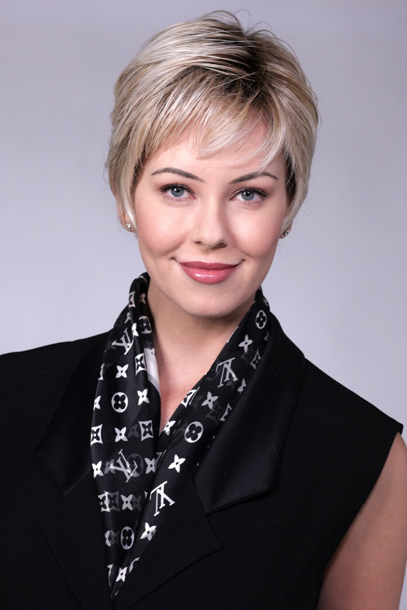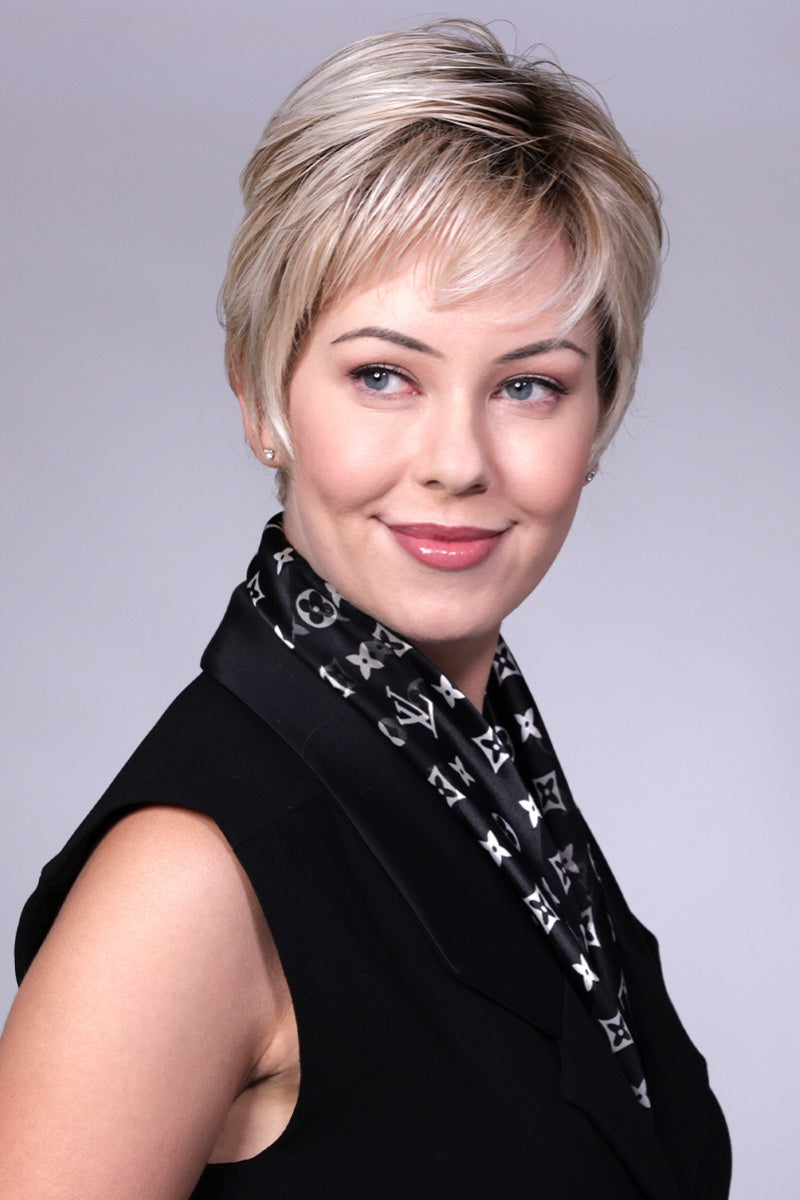 Immerse yourself in the quiet. sophisticated charm of Gramercy. a beloved neighborhood in the heart of Manhattan. Gramercy (CT-1042) by Belle Tress captures the unique history and style of this upscale area. allowing you to exude an air of peaceful tranquility wherever you go. The timeless elegance of its unique design. with monofilament part. extended lace front. and silky. luxurious strands. creates a mix between a classic bob and a chic pixie. The tapered pixie cut and bangs add a touch of sophistication to your look. Get ready to feel confident and beautiful!