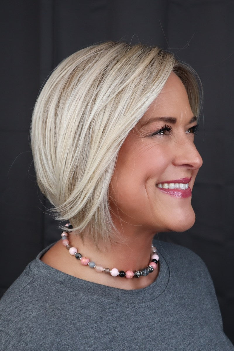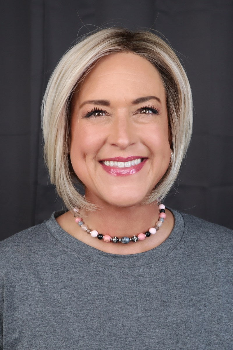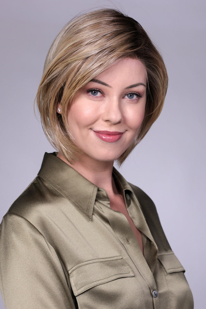 Manchester (CT-1032). by Belle Tress Wigs exudes a vibrant and modern style that is always in fashion. Its strong and tailored long bob cut is complemented by face framing layers. while the extended lace front and monofilament part add a clean and flattering touch. Made with synthetic heat friendly material. this wig is perfect for the contemporary woman who desires a fresh and eye-catching look.