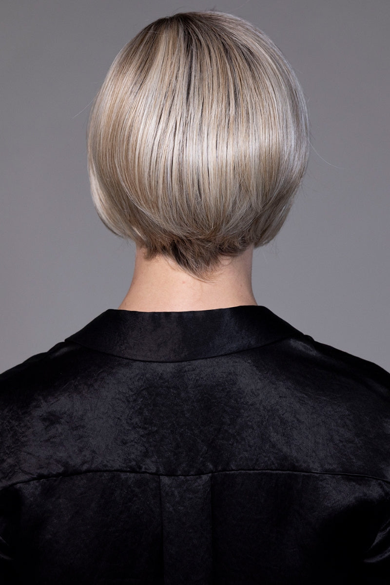 Now with an extended lace front! The Spice Girl has the updated and angled layers of sleek bob. A full lace front and lace part make a beautiful. natural hairline. A premium HF fiber allows you to use thermal styling tools up to 350 degrees. The unique technology of front knotting creates off-the-face styling. Expertly tapered chin length bob with sides that angle up to a short nape.