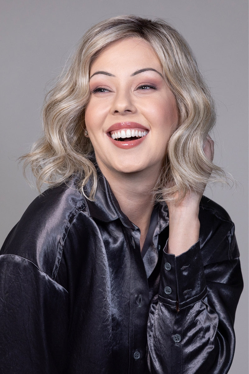 Now with an extended lace front! Different from the typical bob or the "lob" styles. Vienna Roast captures a new trendy style called the "wob" or wavy bob. This look is sophisticated. playful and gives a more youthful. carefree look. Flowing with both bounce and body. Vienna Roast's waves are skillfully styled to reflect the light just the right way. This is the It Girl style. Fashionable. sexy. and fun!