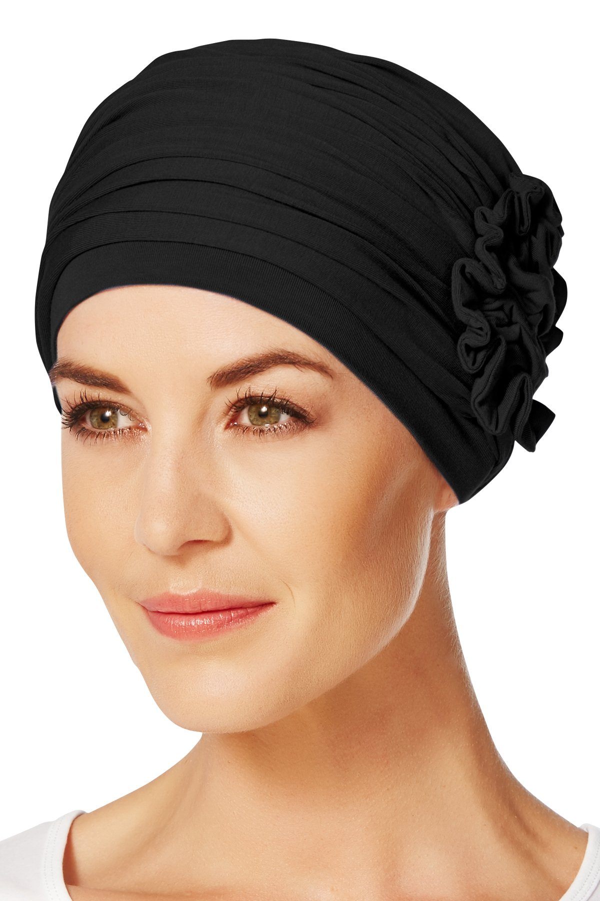 The beautiful Lotus Turban is an absolute must-have. The elegant fitted lotus flower on the side and the decorative pleats completes everything from a sporty to a stylish and modern look and outfit.