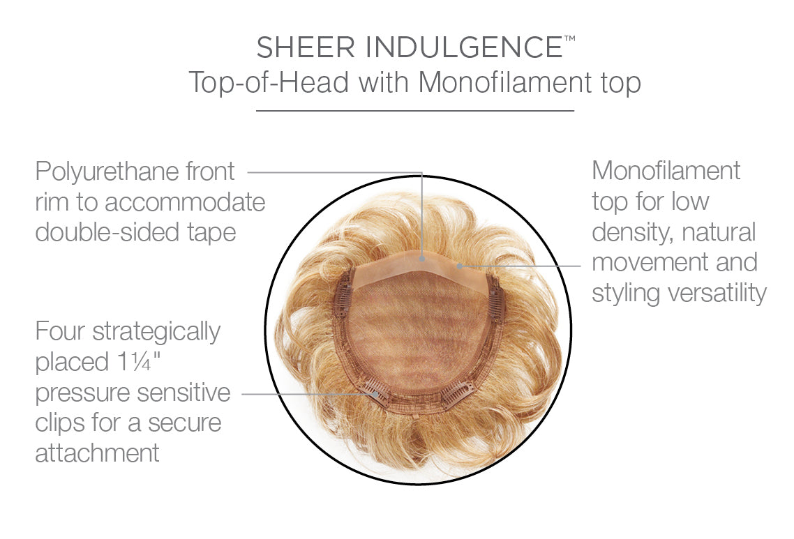 Soft waves on a monofilament top allow for contemporary styling options with parting flexibility. Lightweight and flexible. Lyric is suited for use with short to chin-length styles that need extra fullness. This handy piece can also be used to give an updo a sophisticated finish.