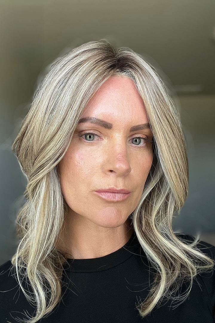 The long-lasting. beautiful beach waves we all crave are so easy to achieve with this effortless clip-in topper. Temple-to-temple lace in the front and a deep mono part give you coverage and the most natural look possible. With minimal styling and blending required. you're ready to go! Attaches with 4 pressure-sensitive clips.