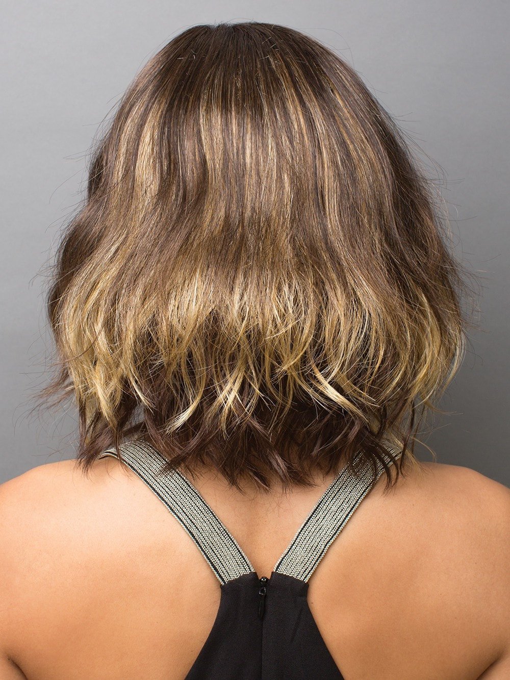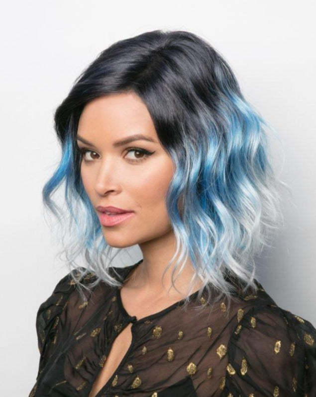 Evanna is a short-length synthetic wig. This wavy ready-to-wear wig is a trendy bob with salon finished beach wave curls that fall to the shoulder. The lace front and partial monofilament base allows for a natural look.