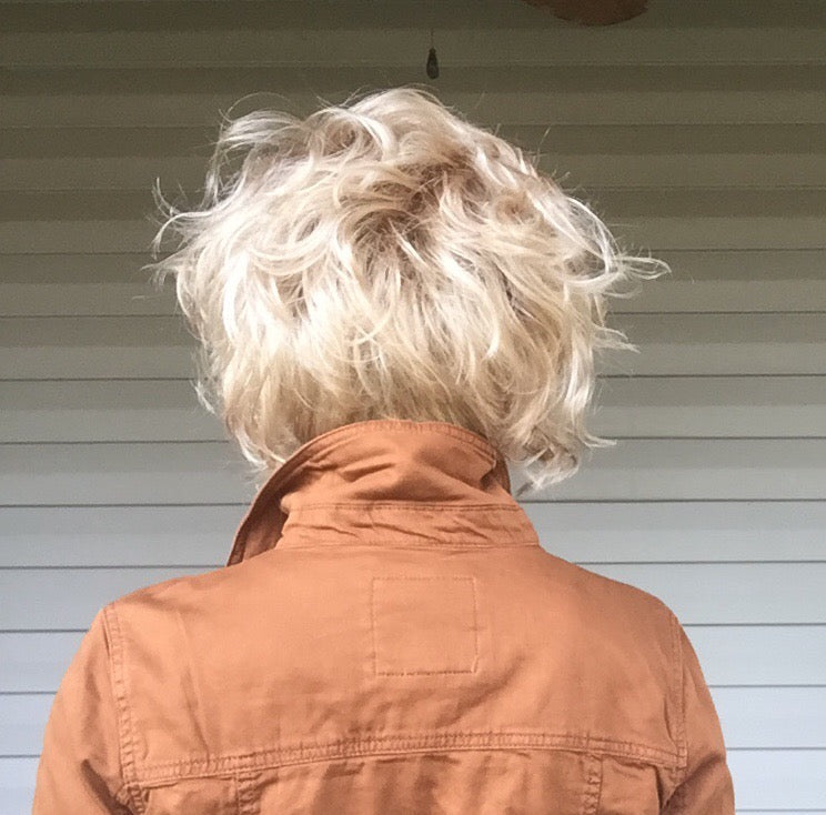 A no-fuss style that reflects the latest natural curl trend. Fresh Chic's textured curl is a stacked bob that looks modern and fresh. A soft. razor-cut fringe adds a gentle accent to shape the face and highlight the eyes. The lace front monofilament part allows for added styling options.