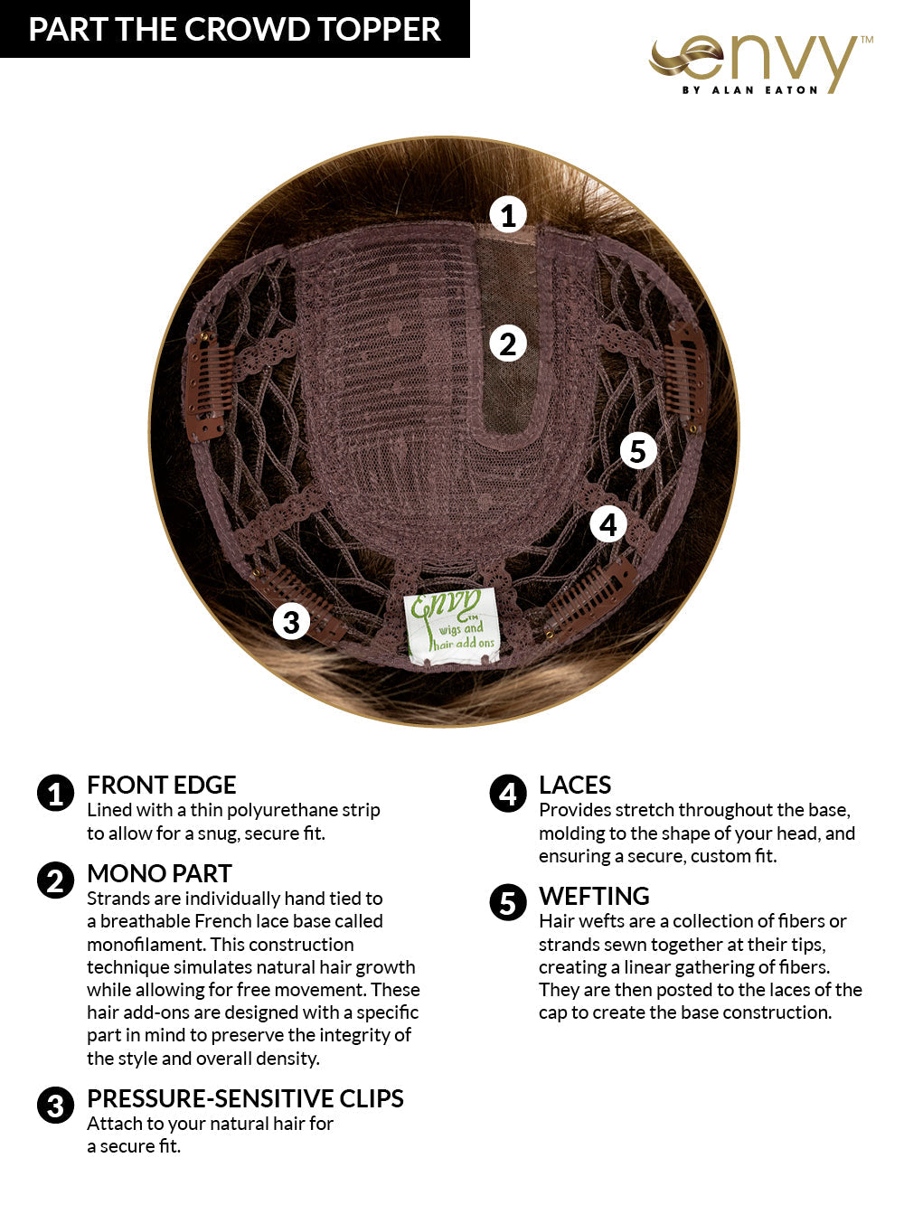 This topper features a monofilament part construction that will give your style side-part sophistication.