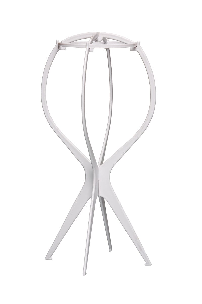 Collapsible wig stands are ideal for storing and/or drying freshly washed wigs. Made of a sturdy plastic. this collapsible wig stand can lay flat for storage ease. Color of wig stand may be white. navy. gray. or pink. NOT EXCHANGEABLE/RETURNABLE