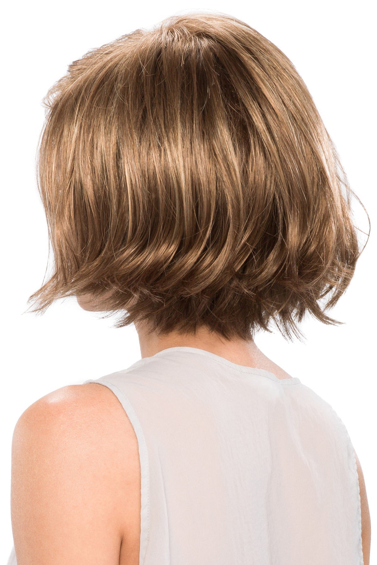 This wig features bold and beautiful multiple layers that can be styled in various ways. Whether tossed up for a casual and fun look. worn smooth for an elegant and sophisticated appearance. or tousled for a firey and feisty retro look. it is always effortlessly pretty. The distinct bangs can be worn as is or styled into wispy layers. Additionally. the short face framing layers precisely hug the sides to the nape. creating a striking look. The exclusive Ambient fiber blend makes styling with a blow dryer a breeze.