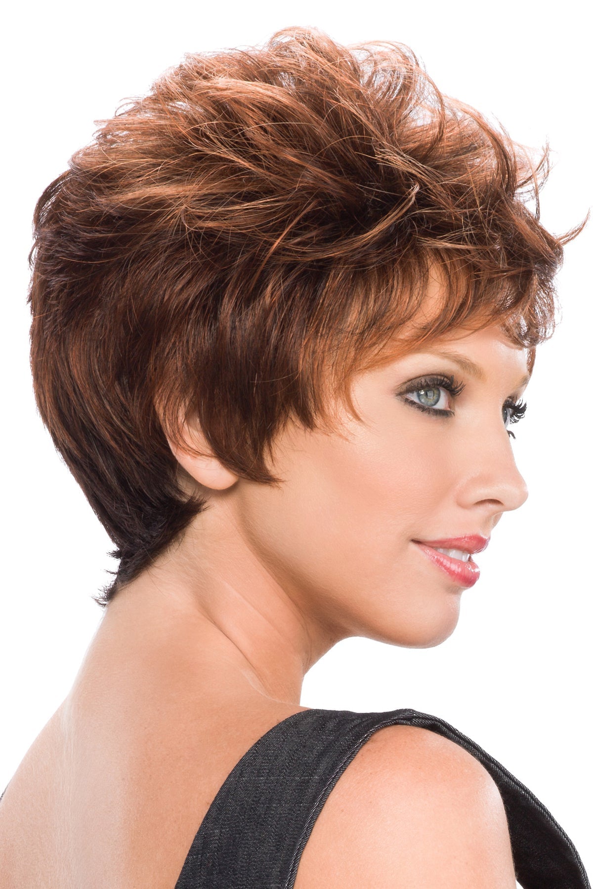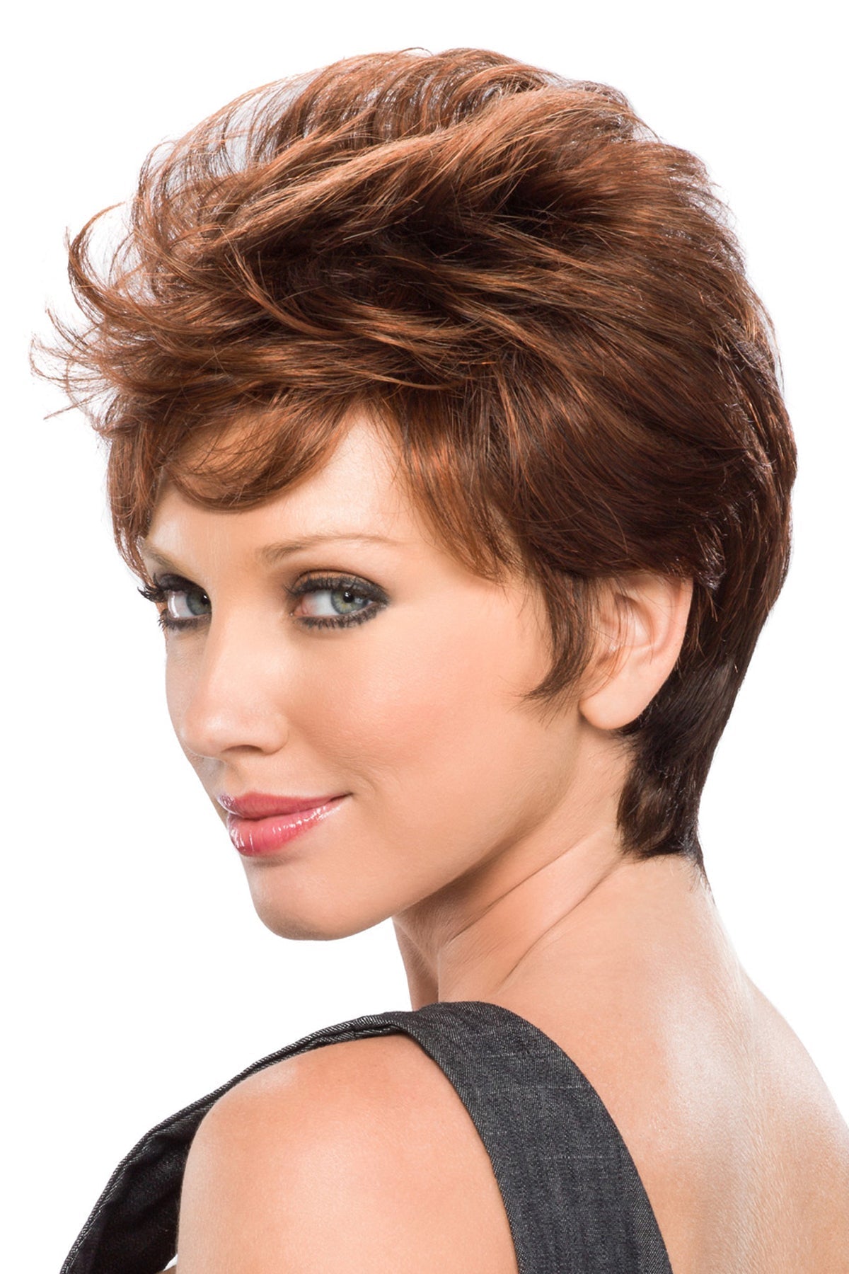 Pixie is a hip textured pixie cut wig with soft bits around the face.