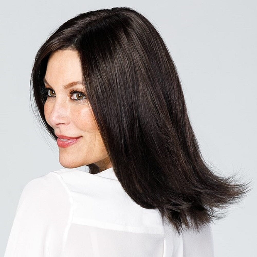 Top Coverage is best for those looking for the full coverage of a wig and the natural look of our SmartLace™ design while giving them the option to incorporate their own hair into any style. This clip-in synthetic topper is designed for those in the advanced stage of hair loss and creates coverage and volume in seconds. The polyurethane tape in the front and sides allow the clips to be removed and adhesive to be applied. Hair Lengths:10" - 14"Approx. Weight: 3.4oz.Construction: Lace Front / Single Monofilament / Hand TiedBase Size: (W) 11" x (L) 11.5" Fiber Type: Synthetic