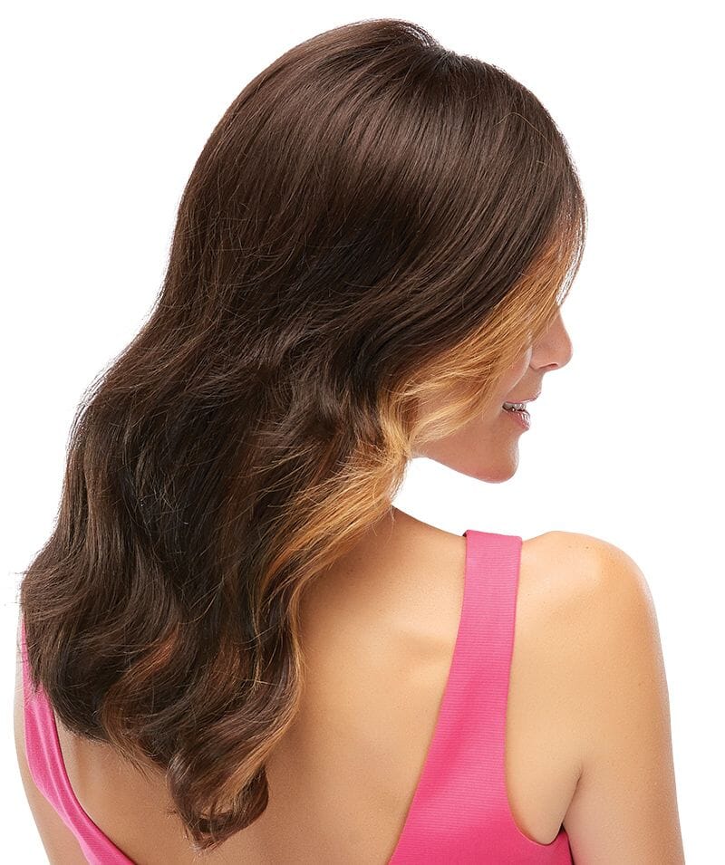 Top Level Hair Addition by Jon Renau is a beautiful hair topper that offers volume and length to your thinning hair. The monofilament base comfortably secures to your natural hair with clips. The long wavy hair will fall over your shoulders adding gorgeous length and body. Top Level comes in many different shades ranging from a strawberry blond to a rich dark brown and many shades in between. This clip in hair piece has synthetic hair fibers and is approximately 10-16 inches.Weight: | 2.8 |