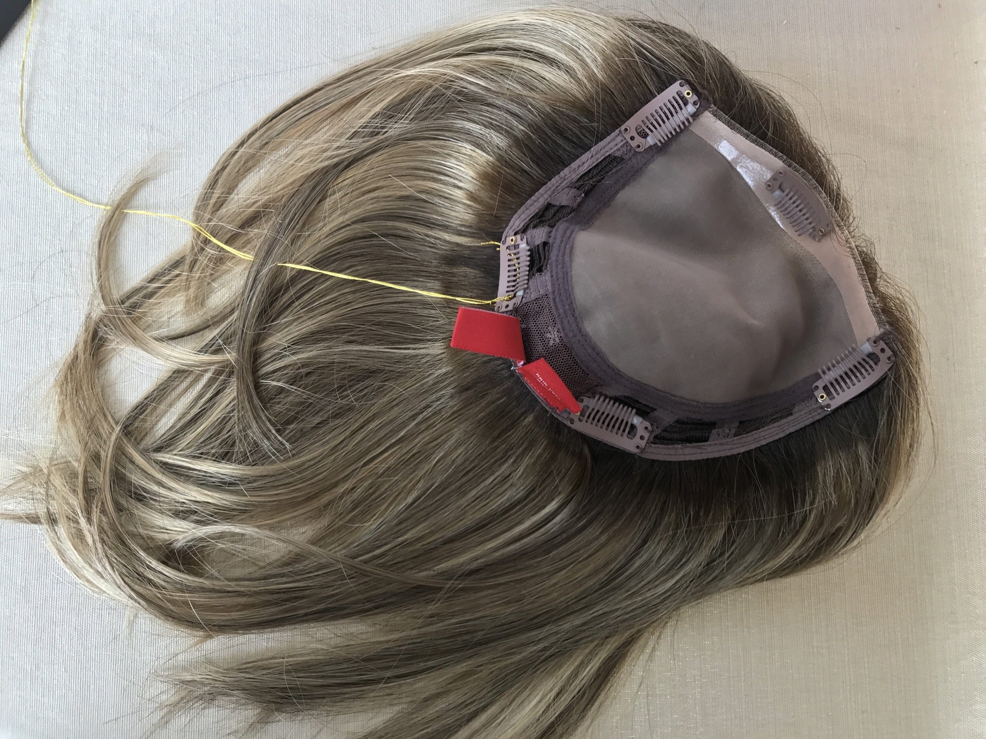 This synthetic topper has a soft monotop that will feel comfortable and add thickness and volume to thinning hair. Worn on the crown and perfect for beginning to mid/progressive stages of hair loss. Top Notch combines with your own hair and has great styling flexibility. The hair length of Top Notch is 8" - 10" and the base is 6.75" -6.5" in size.
