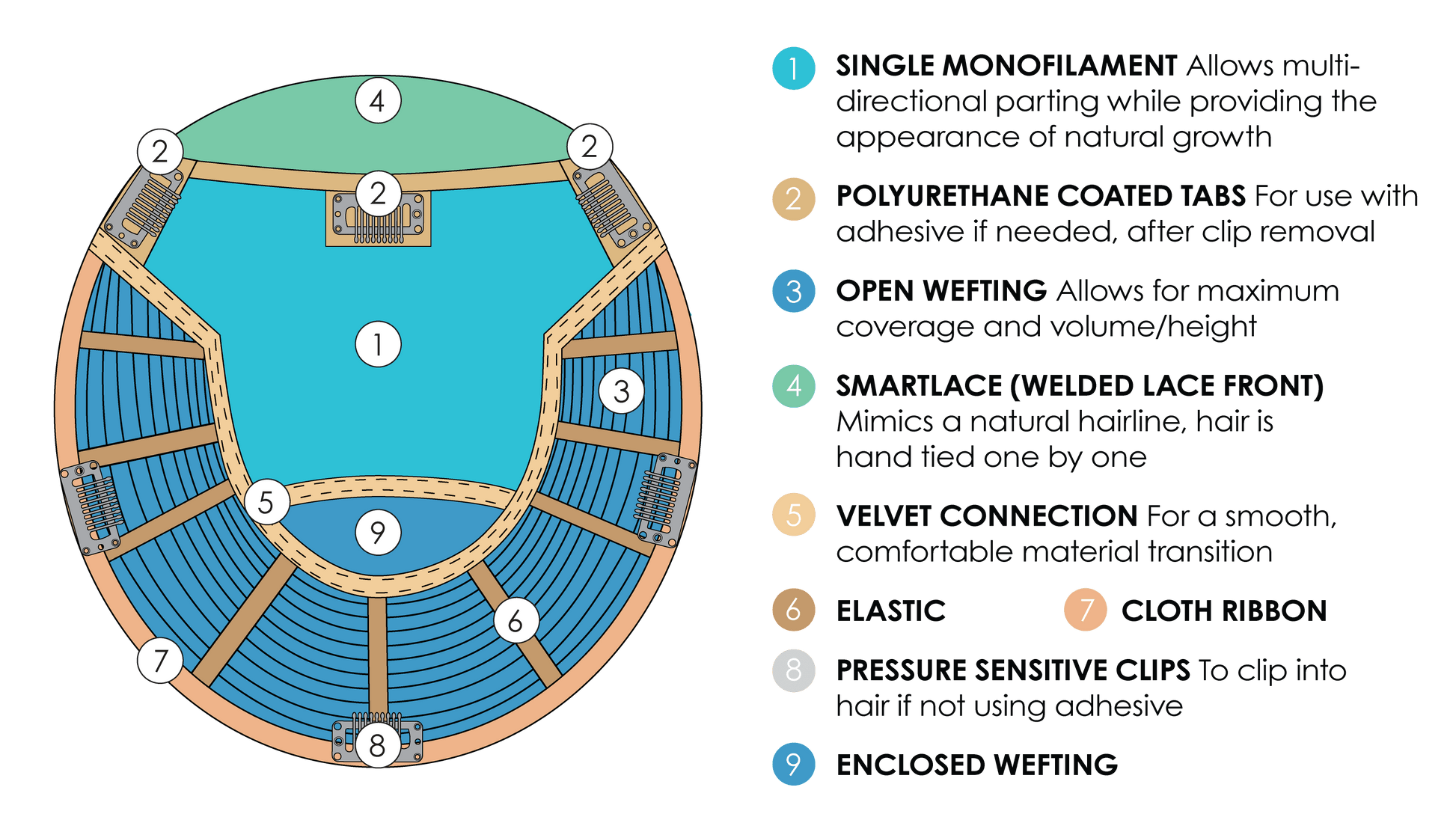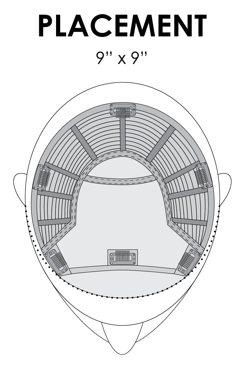 Easily add volume and length with this clip in topper. Featuring a hand-tied monofilament base and a Smartlace front. this premium Remy human hair topper blends seamlessly has outstanding versatility with it's ability to be heat-styled for any look. The base size for this topper is 9" x 9". and it weighs 5.5 oz.