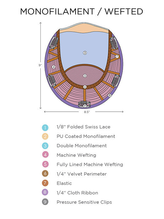 - Monofilament / Wefted Top - Creates the illusion of natural hair growth from the scalp and allows you to part the hair in any direction.