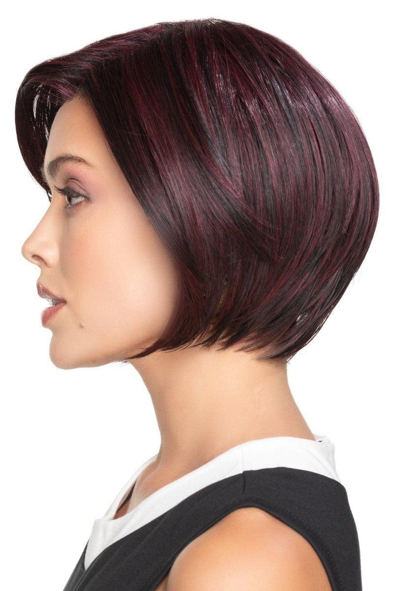 Angled Bob is a short style beautifully contoured with top layers that add extra volume. The flowing sides offer the perfect style to frame and narrow your face. The pre-trimmed lace front creates an undetectable hair line that looks like the hair is growing out of your scalp. This modern concave bob features lightly textured side-swept front bob and back with slightly asymmetric sides.