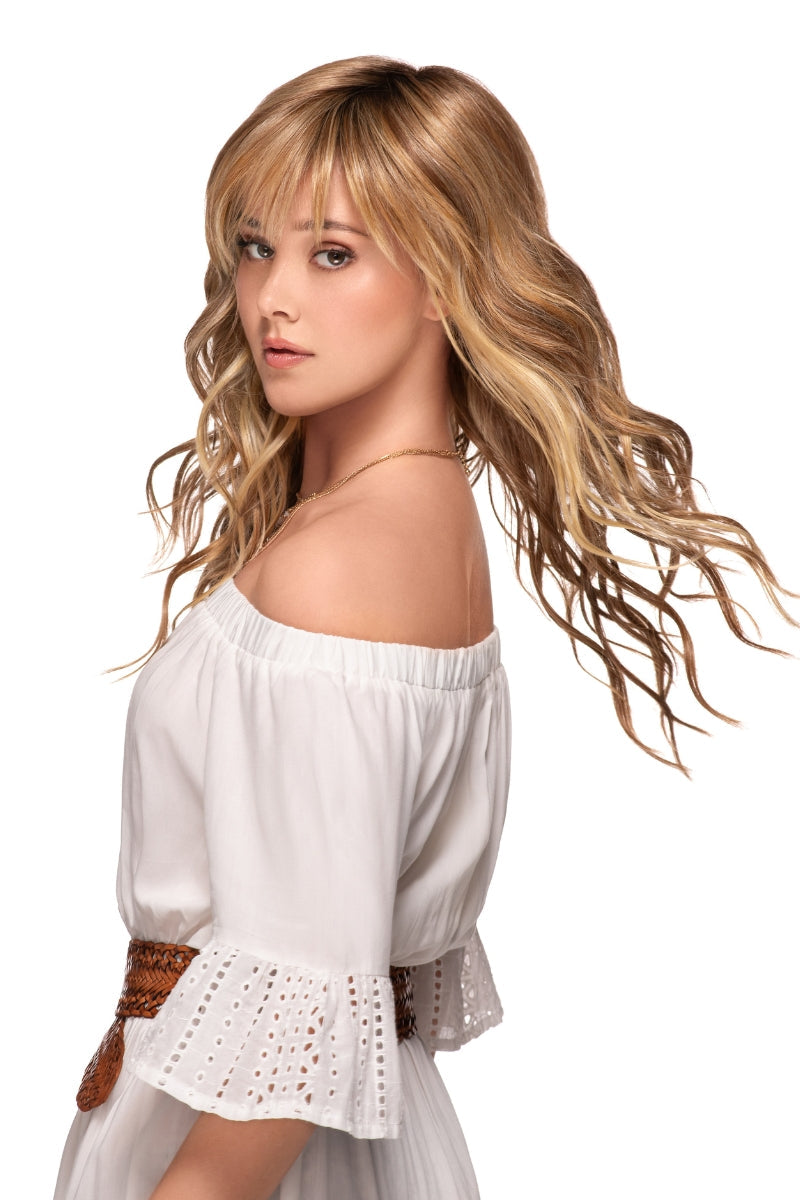 The TressAllure California Beach Waves features long layers of shaped beach waves that tumble below the shoulder with feathered bangs. a smooth silky top and a Sheer Comfort Mono Top Lace Front cap that is designed with a sheer monofilament top and lace front for an undetectable hairline and all day. every-day comfort. This wig is for anyone looking for a new style with waves that last and never get frizzy or dry looking. The California Beach Waves is a longer shag that blends multi-textures and contoured layering for a lightweight feel and plenty of volume without any bulk and flowing sides that perfectly frame the face.