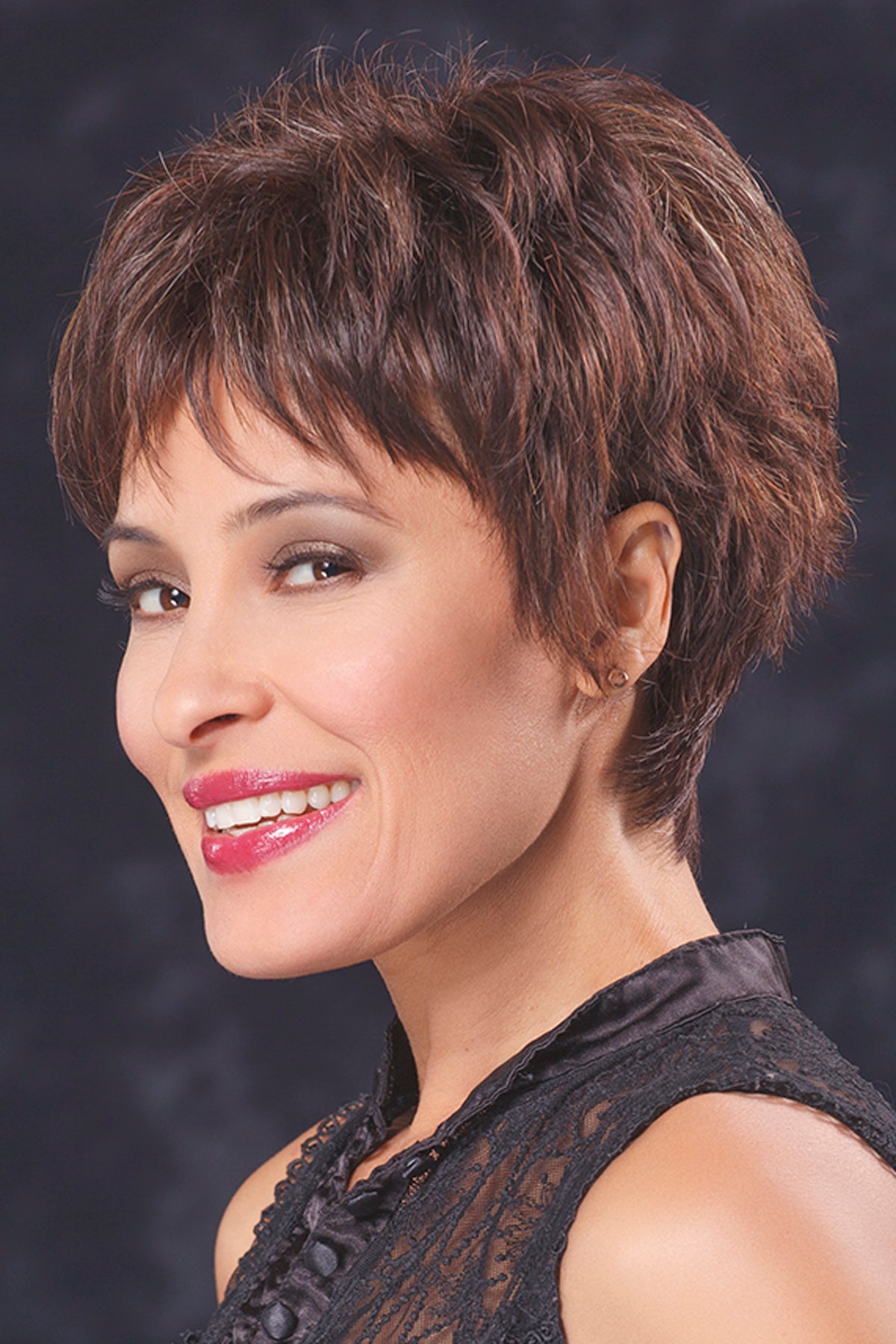 A short. pixie cut tousled style wig with rich texture. It can be worn tamed or spiky.