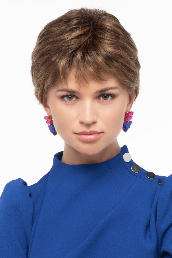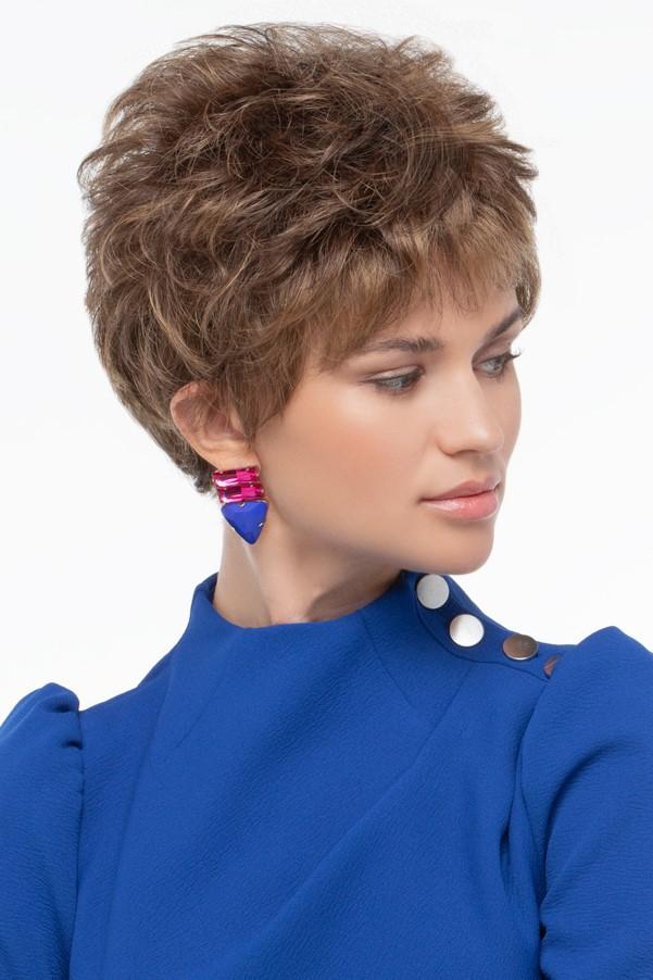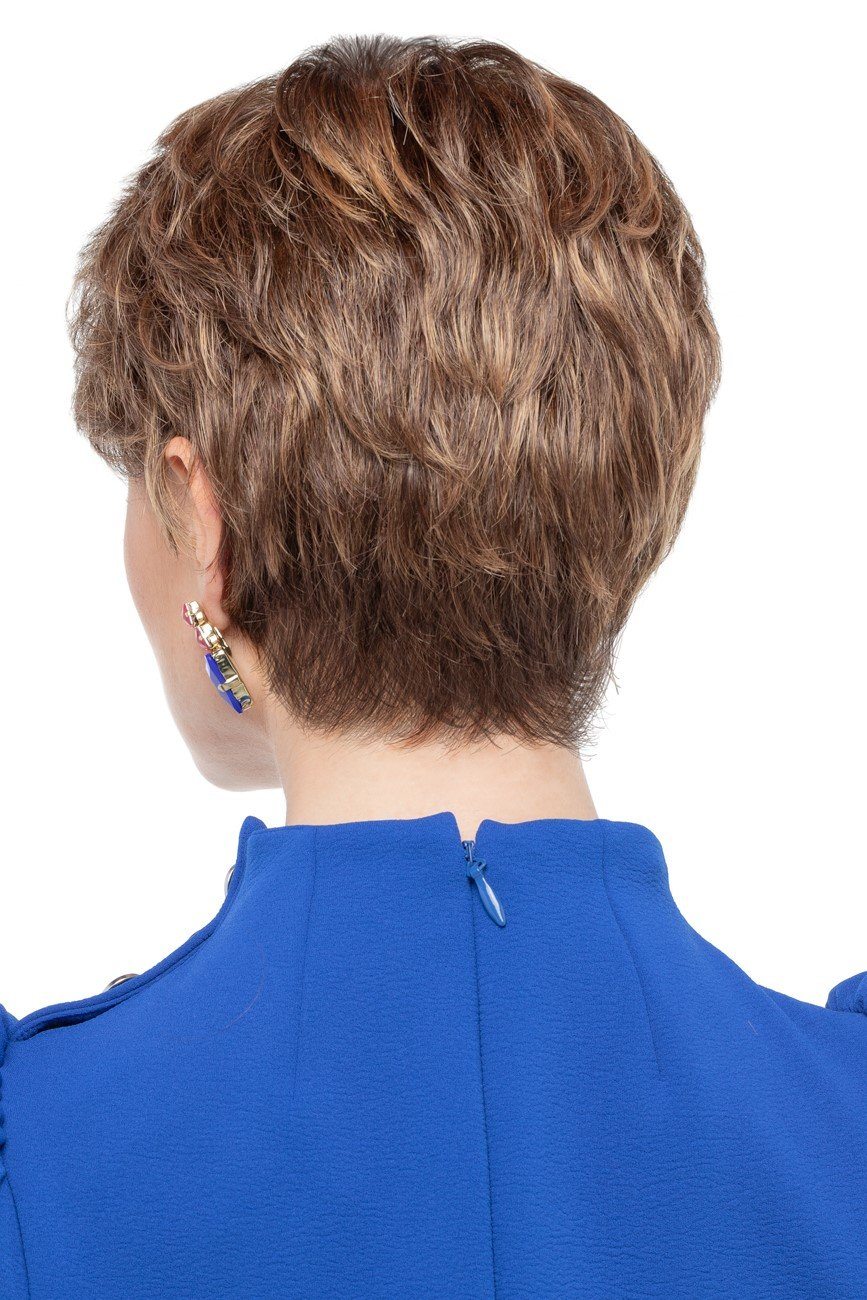 Lightweight synthetic pixie cut wig with a lace front and lace side part. A chic. light. feathery boy cut that redefines easy styling.