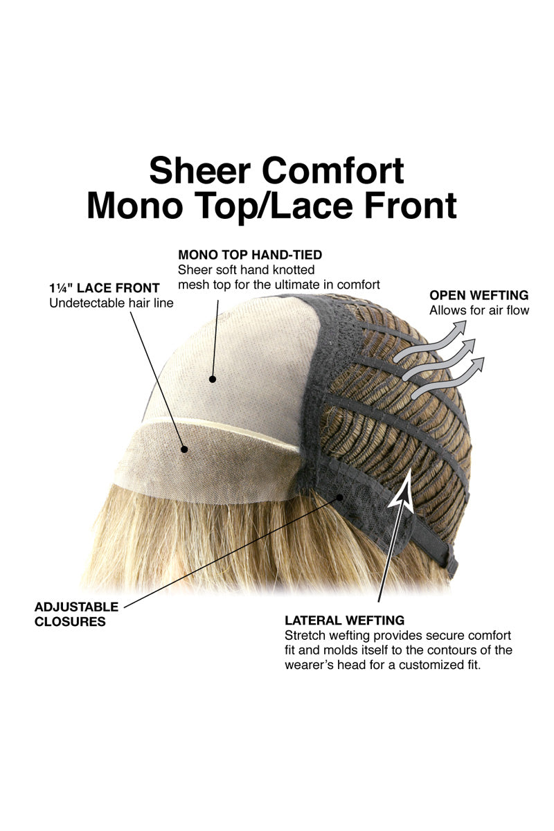 TressAllure's Spectacular Shag is a beautiful bi-level tousled shag that falls below the shoulder with double knotted roots that add lift or brushes smooth with just a shake or flick of the brush. This wig features a Sheer Comfort cap for an ultra-comfort low density weight and comfort. The Spectacular Shag features TressAllure's Style-Able Effortless™ Fiber. a proprietary blend of synthetic fibers that perfectly replicate the density. feel and look of fine Human hair that can be straightened or curled. and is individually hand knotted into a fine soft monofilament lace mesh for an undetectable hairline and the ultimate in wig wearing comfort.
