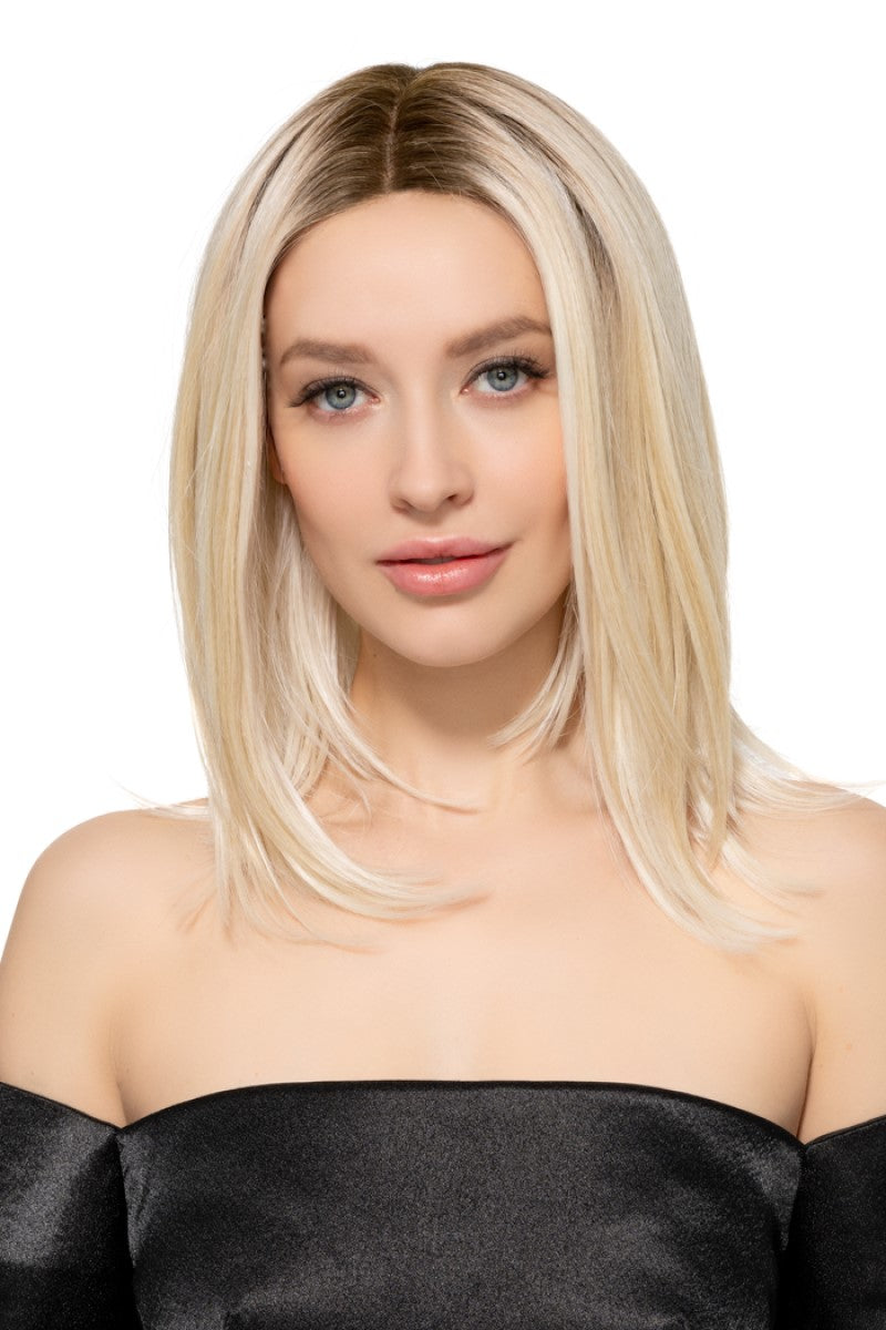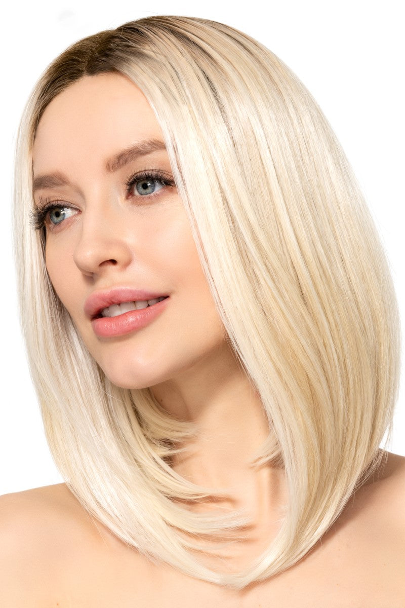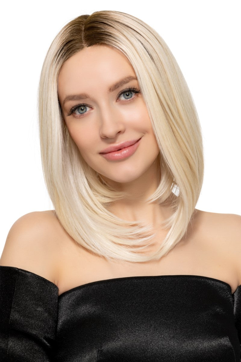This classic long bob. or “lob". is a sophisticated. versatile. and timeless hairstyle that falls between shoulder and collarbone length. Smooth layers of low-density strand-by-strand Style-Able Effortless™ synthetic fibers are double-hand knotted into a sheer monofilament lace front cap for a natural part anywhere and undetectable hairline. It's a popular choice for those who want a medium-length style with a touch of elegance that allows you to add waves or straighten. Undercut Bob is never bulky or wiggy looking.