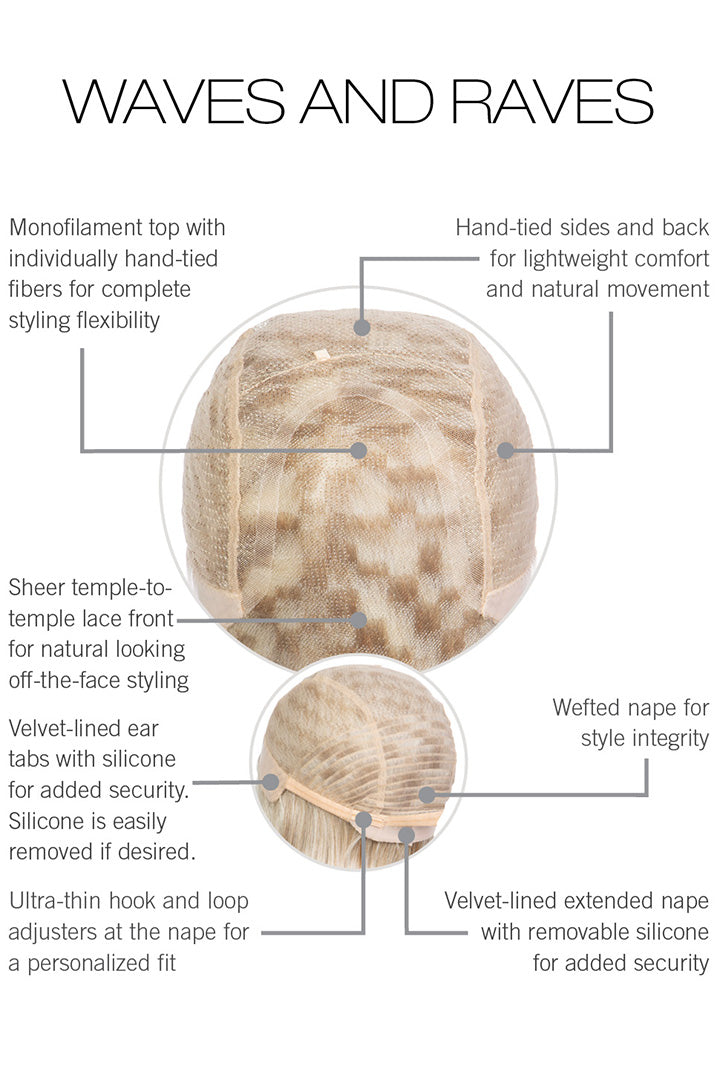 The NEW updated LuxLite Cap II is now lighter. thanks to an expanded monofilament area – twice the monofilament area as the original LuxLite Cap! The LuxLite Cap II has an average circumference and is designed with freestyle knotting. but otherwise. it has the same great design with no ridges or bumps from the top of the wig to the crown. Features include lightweight. stretchable fabric to accommodate a variety of head shapes. and hand-stitched. removable silicone on the ear tabs and nape.