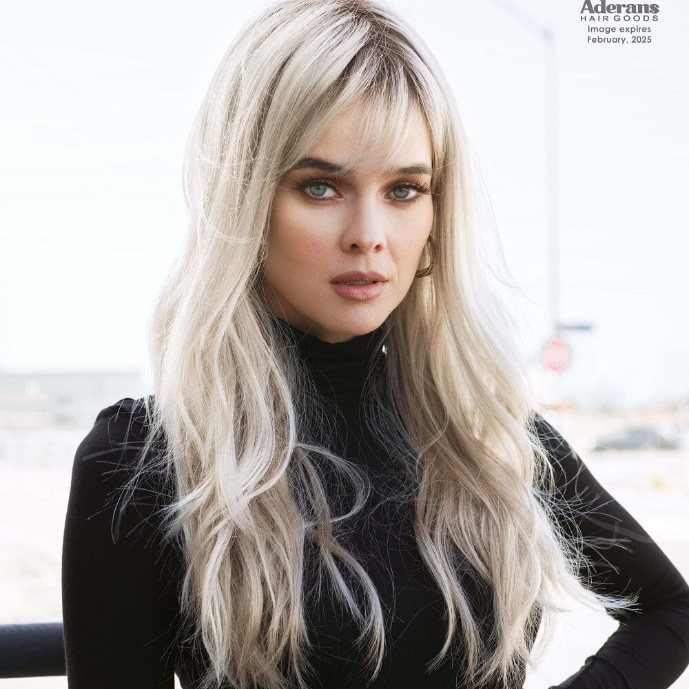 Wren from our Rene of Paris Hi-Fashion Collection is a long-length synthetic wig. This wavy ready-to-wear wig is a long tousled beach wave with a feathered fringe. This style flatters everyone for an everyday look. Wren is machine-made with adjustable tabs in the back nape area to allow a more comfortable fit. The result is a comfortable fit with a natural look that is both fashionable and easy to wear. Hair Lengths: Front: 4.25" Crown: 15" Nape: 17" Approx. Weight: 5.46 oz. Cap Size: Average Construction: Machine-Made Fiber Type: Synthetic